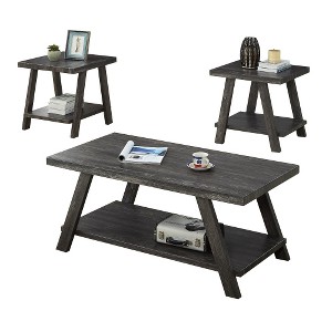 ACEPANO 3-Piece Modern Rectangular Wood Coffee Table Set with 1 Coffee Table & 2 Side Tables for Living Room-Dark Gray