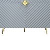 Transform your living space with the sleek and stylish ACME Gaines Accent Cabinet. This elegant cabinet features a high gloss gray finish that adds a touch of modern sophistication to any room. The distinctive wave pattern design on the front enhances its visual appeal, making it a standout piece in your decor. Built with a fully KD (knock-down) structure, this cabinet is easy to assemble and disassemble. The metal legs provide sturdy support, while the adjustable shelf offers versatile storage options. With an additional support leg and magnetic closures included, the ACME Gaines Accent Cabinet combines functionality with contemporary style, making it the perfect addition to your home.