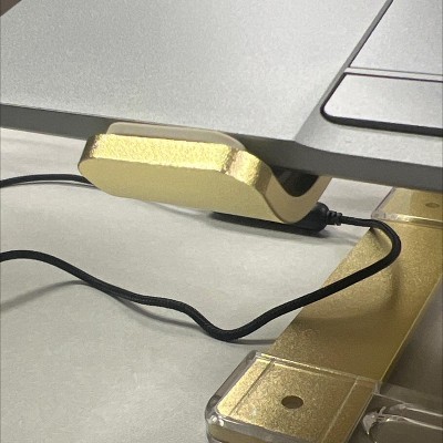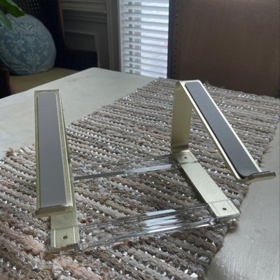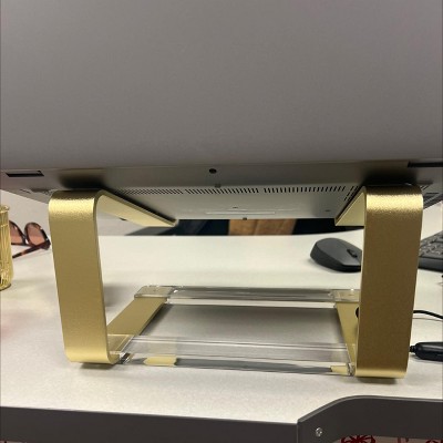 This laptop riser is a stylish and functional addition to any modern workspace. Guests appreciate its ability to elevate laptops, providing extra desk space and improving ergonomics. The combination of gold and acrylic is visually appealing, though some guests noted discrepancies in color and stability. Despite minor concerns, its sturdy build and aesthetic appeal make it a recommended choice for enhancing office decor.