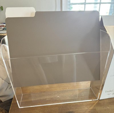 This product offers a stylish and functional solution for organizing various items, making it a great addition to any home office or entryway. Guests appreciate its aesthetic appeal and versatility, using it for everything from mail to art supplies. However, it falls short for those specifically looking to store standard file folders due to its narrow design. Overall, it is well-made and affordable, perfect for creative storage solutions.