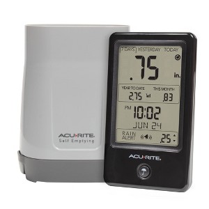 Never walk through the mud to gather rain data and empty a rain tube again. The AcuRite Wireless, Self-Emptying Rain Gauge with Indoor Digital Display does the work for you! It accurately measures rainfall and wirelessly sends your data to the digital display inside your home — allowing you to no longer eye-ball a standard gauge out in your yard.