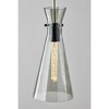 The Walker pendant light embraces the mixed metal trend with its stunning and eye catching design. It can be hung by itself or paired with several more to create a stunning effect and add illumination to your space. With a 6' black cord accented by antique brass embellishments connecting the shade to the round, black metal canopy, the height of the light can be adjusted to suit any room regardless of the ceiling height. Suspended from the canopy is a luxuriously styled smoked glass, tapered conical shade that leaves the black metal socket and included 40W Edison tube bulb visible for striking, vintage appeal. This pendant light is also compatible with full-range wall dimmers, allowing you to select the perfect brightness level for your needs. Complete your decor with the coordinating Walker floor lamp, desk lamp, and wall lamp.