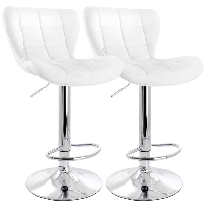 Adjustable Swivel Bar Stool in Faux Leather with Back and Chrome Base for Kitchen or Bar