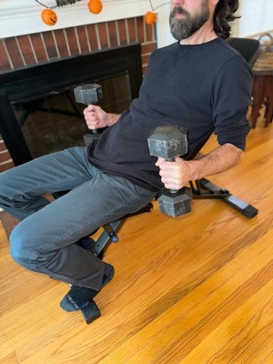A nice entry level weight bench, the seat is well cushioned and comfortable. Its easy to lift (not heavy) and move, and adjusting the seat is quick and easy. It does lack some safety features, like a locking pins to keep the chair in place, and the seat back can easily fall out of the hinge if moved (which can be problematic if you have you children around). The fabric around the seams also seems not well consructed, so I'm curious how it will hold together over time. If you're looking for an easy to use, light use weight bench - this is a great solution.
