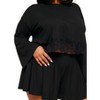 This cozy and romantic black PJ set is perfect for a special night in. The knit top & shorts have a flowy fit, while the matching shorts have a cropped hem and lace detailing. (Available in plus-sizes 1X-4X.)