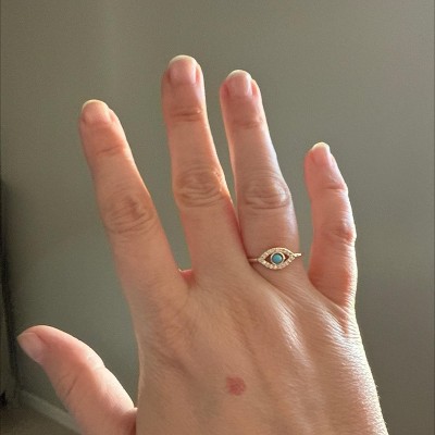 [This review was collected as part of a promotion.] The little turquoise eye makes the ring. Very petite perfect size. Love it so much.