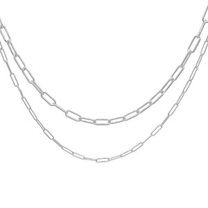 The Adornia Silver Plated 3mm and 4mm Paper Clip Chain Set offers a sleek and modern design with two different chain sizes for a versatile, layered look. Made from silver-plated brass, the set includes a 3mm and a 4mm paper clip chain, each featuring elongated, rectangular links that create a clean, contemporary aesthetic.