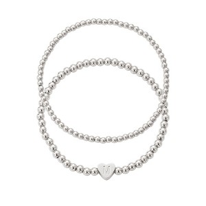 Product Name: Adornia Silver Plated Ball Bead Initial Bracelet Set