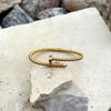 This 18k gold plated cuff blends a bold nail-inspired shape with a row of beaded details for added texture. Built to resist tarnish, it stays bright and polished no matter how often you wear it. A striking piece that balances strength and style.