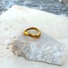 An effortless piece that adds a touch of modern flair, the Adornia Tarnish Resistant 18k Gold Plated Curved Band is designed to sit smoothly on your finger. Its gentle, arcing shape gives it a unique, fluid look that's perfect for wearing on its own or stacking seamlessly with other rings. Made with a tarnish-resistant 18k gold plating, it keeps its bright, polished finish for lasting wear.