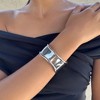 This tall silver plated cuff features a smooth, curved design that feels modern without being flashy. Built to resist tarnish, it keeps its clean shine even with regular wear. It slips on easily and stands out quietlyperfect for adding a subtle statement to your wrist.