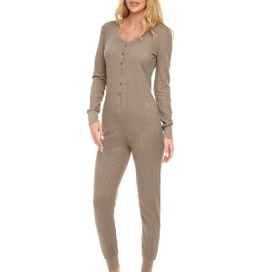 ADR Women's Pajamas, Soft Ribbed Knit Waffle Pajamas, One Piece Pajamas, Jumpsuit, Romper for Adult - 1 of 4