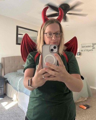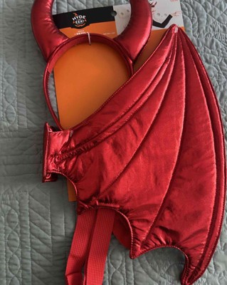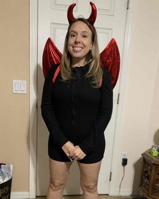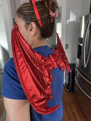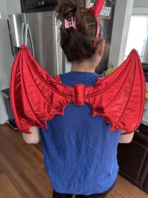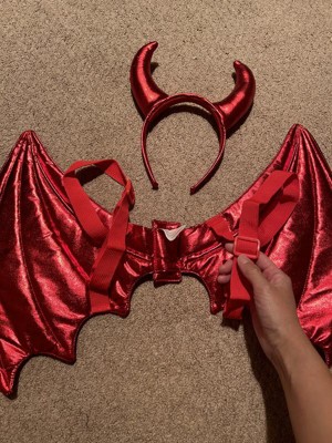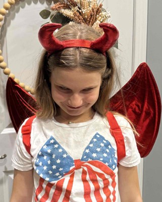 A: The kit includes a headband with devil horns and shimmering red wings.