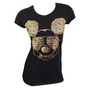 Adult Mickey Mouse Gold Foil Ladies Black Tee Shirt - 1 of 2