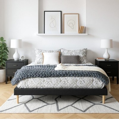 FULL Size Platform Bed Frame with wood slats support. The simple and elegant design enhances your bedroom with a classic, cozy look, providing your family with a safe and comfortable sleep environment.