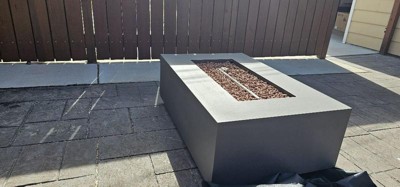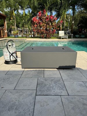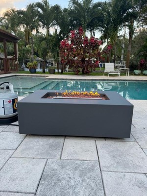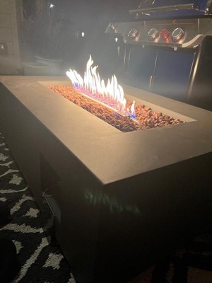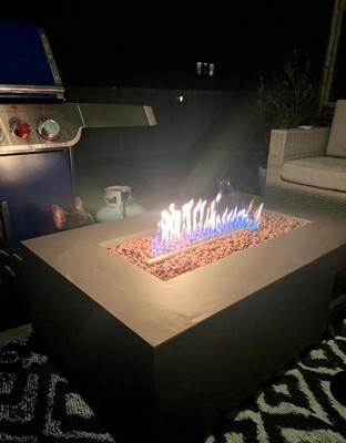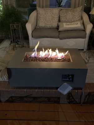 [This review was collected as part of a promotion.] I was lucky enough to claim the Aegean 42" Rectangle Steel Propane Gas Fire Pit Table by Real Flame and it's working out extremely well. We got the color 'Weathered Slate' and it has such a simple, concrete look to it. Fantastic piece, beautiful color and high-quality construction. Dead-simple operation, great flame. Perfect for smaller areas, but would look great in a larger setting as well. We also plan on purchasing the matching tank cover and table cover to really complete the set. Fits the space, was easy to convert to natural gas and install and provides the look we were hoping for. It is wood safe for anyone who may need to place this on their wood deck or porch which I think is a bonus considering it's aimed for everyone. It has an adjustable flame height which I also really like because sometimes you want a higher flame for roasting marshmallows and a lower flame for hanging around the fire! Would recommend Real Flame products to anyone and will definitely be purchasing from them from now on for anything we may need! :)