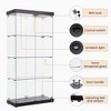 Showcase your collection with security and style in the AENKYO 4-Tier Glass Display Cabinet. This spacious, floor-standing curio case features double doors with two independent locks, two built-in warm ambient lights, and four adjustable feet with hidden wheels for easy mobility. Crafted from 5mm tempered glass and durable MDF, its frameless design offers a clear, museum-style display perfect for your living room, office, or bedroom.