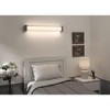 Simplistic design, easy operation, and functional lighting, the AFX LED Overbed Wall Light is an excellent lighting option for any modern home. This wall light fixture features a 4-way pull switch, angled metal trim ends, and a linen acrylic front diffuser. The horizontal light is 50 inches long and has an oakley bronze finish. Simplistic design LED overbed with 4-way pull switch. Features angled metal trim ends. Available in two finishes and two lengths. Linen acrylic front diffuser..,