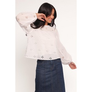 Add an effortlessly chic touch to your wardrobe with the Aggie Blouse in white. Featuring a delicate embroidered floral eyelet detail, this blouse strikes the perfect balance between charm and sophistication.