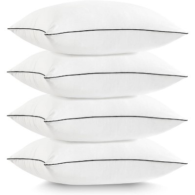 - EXQUISTE DETAILS PILLOWS: Our Pillows are added quilted embossing on front side, it embossed with extra filling to make it more plush, other side is normal side, you will have two choice for your prefer side. Double piping craft with sapphire blue gusseted band design not only give a better look, but also helps hold it's plush shape, won’t flatten out after longtime use. Each details are aim to maximizing its‘ comfort and improving your sleeping experience