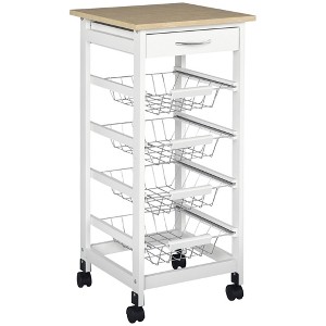 Aghana Digitals White Rolling Kitchen Cart with Solid Wood Frame, Storage Drawer & Wire Baskets -