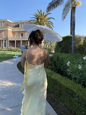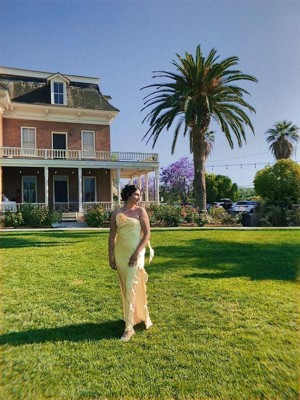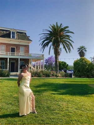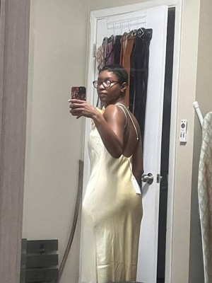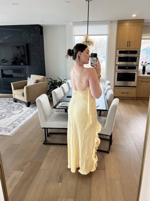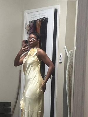 [This review was collected as part of a promotion.] This is the most perfect yellow dress ever, I received compliments all day long!! The material was a nice silk and kept me fresh in the sun! However, I received the dress with a faulty hem on the leg slit and it was slight fraying throughout the day :( I didn’t have enough time to return the dress. Other than that, the dress was perfect!!