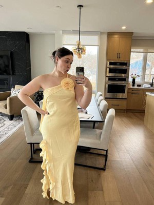 Aila Rosette One Shoulder Dress - Butter Yellow XS