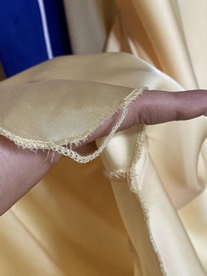 [This review was collected as part of a promotion.] This dress is amazing but I did have to trim the thread along the seams. It had an unfinished look to some of the edges when it arrived. It’s true to size and the fabric is stretchy making it comfortable. I would say it is more yellow in person- less like the outdoor photo online. I recommend steaming it before trying it on. It will need to be hemmed for my height, 3-4 inches.