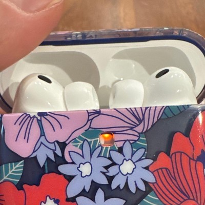 The cutest AirPod case! The floral pattern is adorable, and the AirPods slide right in with ease. The clip makes it super convenient to attach to a pants loop, keychain, or purse. Stylish and practical—love it!