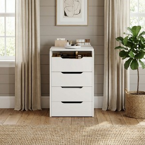 Transform your bedroom into a sanctuary of style and order with this sleek modern dresser, designed to complement any decor. Its four spacious drawers provide ample space to store clothing, accessories, or linens, while the chic white finish adds a touch of elegance. Perfect for those seeking a blend of functionality and contemporary design, this dresser offers a practical solution for organizing your essentials in a sophisticated manner. Elevate your bedroom with ease and embrace a clutter-free lifestyle.