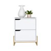 Enhance your bedroom decor with this modern two-drawer nightstand, perfectly blending functionality and style. Crafted with a sleek white finish and subtle light wood base, it offers versatile appeal to any color palette. The spacious drawers provide ample storage for bedside essentials, keeping your space organized and tranquil. Built to last, this contemporary nightstand stands as a stylish focal point for your bedroom sanctuary.