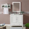 - The bathroom vanity cabinet features a spacious interior and a large bottom drawer, providing ample room for towels, toiletries, or other bath essentials