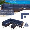 This high-quality ALAULM outdoor woven rattan sofa set brings joy to your outdoor living! Hand-woven PE rattan is waterproof and fade-resistant, while the powder-coated steel frame ensures stability and balance. High-density fabric makes the cushions and pillows fade-resistant and waterproof, and the thickened 4-inch memory foam core effectively relieves body pressure! Modular patio sofa—your one-of-a-kind choice!
