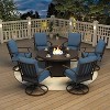 ALAULM 7PCS Metal Outdoor Patio Furniture Set w/Round Firepit Table,Patio Conversation Set 6Swivel Chairs w/Thick Cushion&40000BTU Firepit Table,NBlue