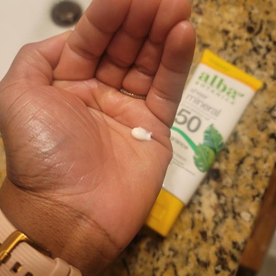 [This review was collected as part of a promotion.] Alba Botanica - AL MINERAL SNSCN LTN SPF50 3OZ is great. It goes on light and non greasy. It lasts all day. Alba Botanica - AL MINERAL SNSCN LTN SPF50 3OZ has a great smell and is packaged nicely. I'd recommend it.