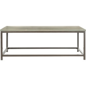Give your decor an industrial chic edge with this Alec Coffee Table. Alecs smooth wood surface is the perfect counterpoint to its open metal frame. For an eclectic curated look, pair Alec with more traditional accent accessories. Care Instructions: Dust regularly with a soft, dry cloth. Never use oiled or treated cloths on lacquered finishes. Some finishes can be wiped with a damp (not wet) cloth, followed at once by rubbing with a dry cloth to remove fingerprints and smudges. For persistent spots, gently clean with a soft cloth and a solution of water and mild soap, make sure to wipe dry. Use adhesive felt pads, coasters and placemats to protect your furniture.