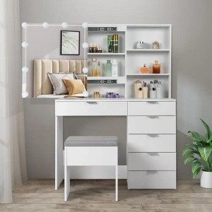 The lights in the vanity are not a good design. They have a twist bulb to tighten the wire but the wires break so easily. This was a Christmas present and now doesn’t have lights that work.