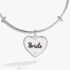 It’s the moment of a lifetime, when you make your forever promise to the love of your life. This Charm Bangle features an expandable wire bangle bracelet with a heart charm engraved with “Bride,” accented with a clear crystal and a textured rope border. Wear it to savor every moment of this special engagement time.