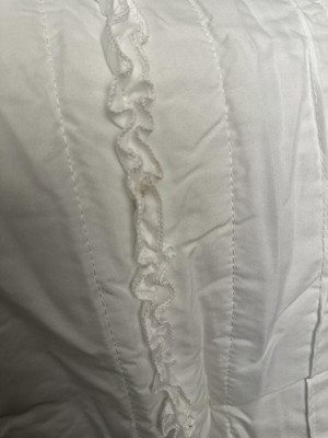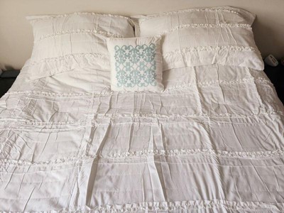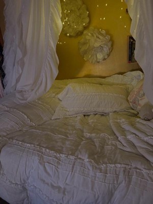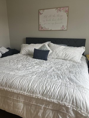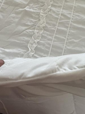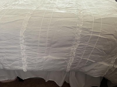 [This review was collected as part of a promotion.] This isn’t a stark white which can be both good and bad. I actually really like both the ruffles and the color. The fact that there is a bed skirt is amazing! I’ve never seen that in a set before and I’m thrilled with it because you know the colors will match.
