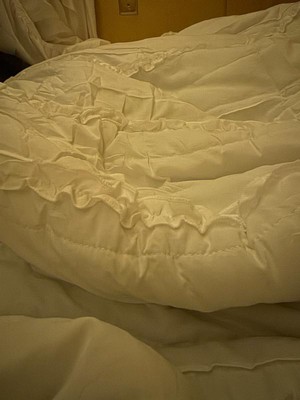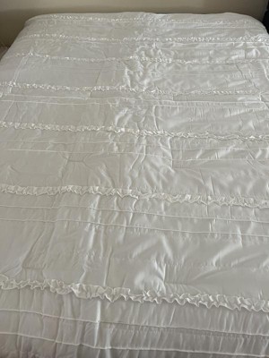 [This review was collected as part of a promotion.] This comforter is very cute with frills on it! But the quality is just OK. It's pretty thin. It's a good blanket for the summer, but it doesn't give that fluffy look of thicker comforters. I thought the throw pillow that came with it was ugly. I would use this when I have guests over or as a back up comforter.