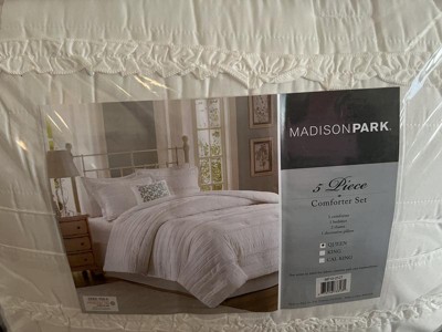 Alexis Comforter Set (California King) White - 5pc: Madison Park, Microfiber, Ruffled, Shabby Chic Style