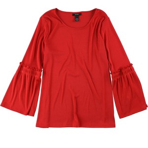 Alfani Womens Ruffle-Trim Basic T-Shirt, chinesered, Medium