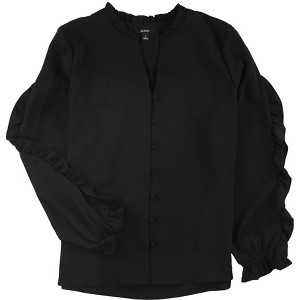 Alfani Womens Ruffle Trim Button Down Blouse, black, Medium