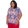 Alfred Dunner Womens Plus-Size American Flag Patchwork Tee, Blue Multi, Size 2X