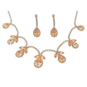 Anna-Kaci Women's Gold Tone Necklace and Earring Set with Peach Crystal Teardrop Accents, Adjustable Chain, Elegant and Sparkling Design - Peacock