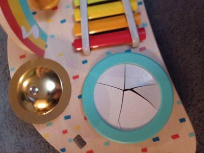 Got this for my one-year-old for Christmas because he always seemed to be drumming on everything. Was a little disappointed at first—the xylophone and symbol are pretty quiet, but I figured he’d age into it. He’s 18-months-now (the recommended age for the toy) and last night broke the drum in the course of normal 18-month-old play.