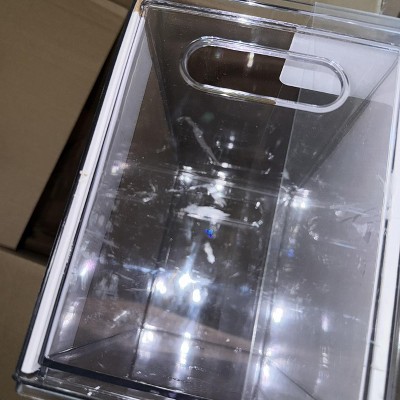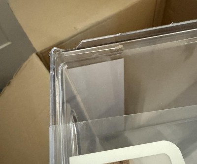 I like the clear material but these either open to fast or get stuck. Not as stackable as you’d expect. It’s bowing after a few months and I’ve broken my things from the drawers sliding out and falling.