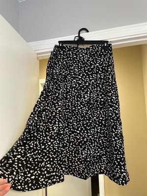 This chic, A-line midi skirt has a natural waist fit and a flared hem shaped by chiffon fabric. Hidden side zipper and pocket. Pair it with the matching top for a complete look. Easily teamed with a tucked-in blouse and high heels for a polished look. Gauzy woven fabric is dressed up with abstract white floral prints, shaping this whimsical skirt that falls from a natural waist into a twirly midi skirt, creating a flattering, tailored fit.