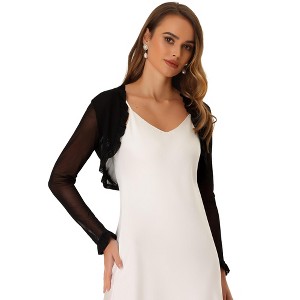 INSPIRE CHIC Women's Elegant Sheer Mesh Long Sleeve Ruffle Collar Crop Bolero - 1 of 4