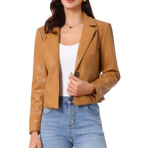 Allegra K Women's Faux Leather Motorcycle Vintage Cropped Blazer Jackets - 1 of 4